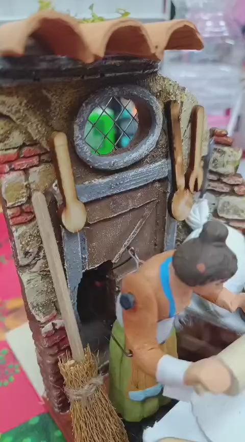 Questo gruppo è alimentato a 220v e la Impastatrice in terracotta 10 cm è dotata di accessori che rendono la scena dinamica e realistica. Grazie al movimento continuo, la Impastatrice in terracotta 10 cm dona vitalità al presepe, creando un forte impatto visivo.