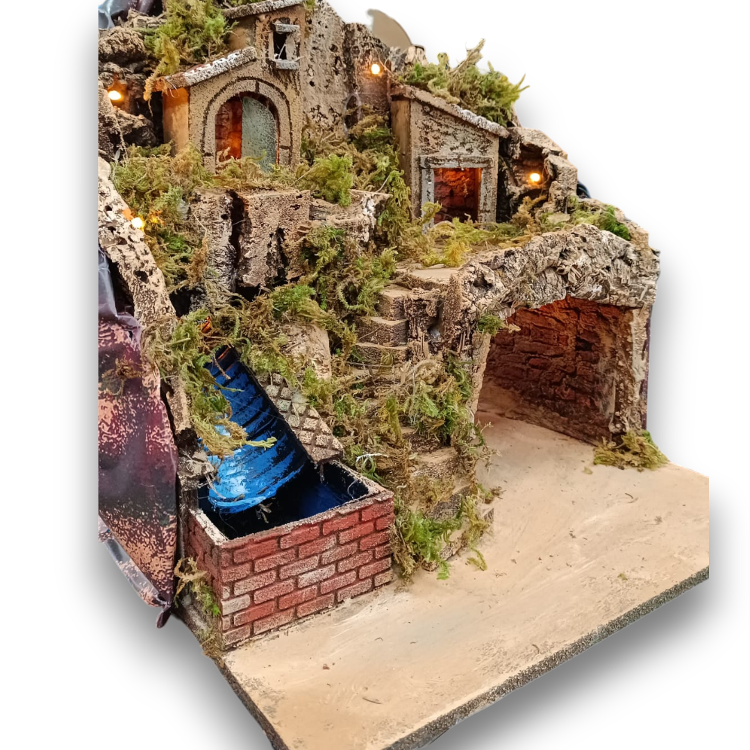 Il Presepe 1 Grotta con Cascata e 2 Case è una scenografia artigianale compatta ma ricca di fascino, ideale per chi desidera un presepe scenografico con elementi dinamici e realistici. Con il Presepe 1 Grotta con Cascata e 2 Case è possibile creare un’ambientazione suggestiva grazie alla presenza della grotta centrale e delle due case laterali che donano profondità e movimento alla composizione.